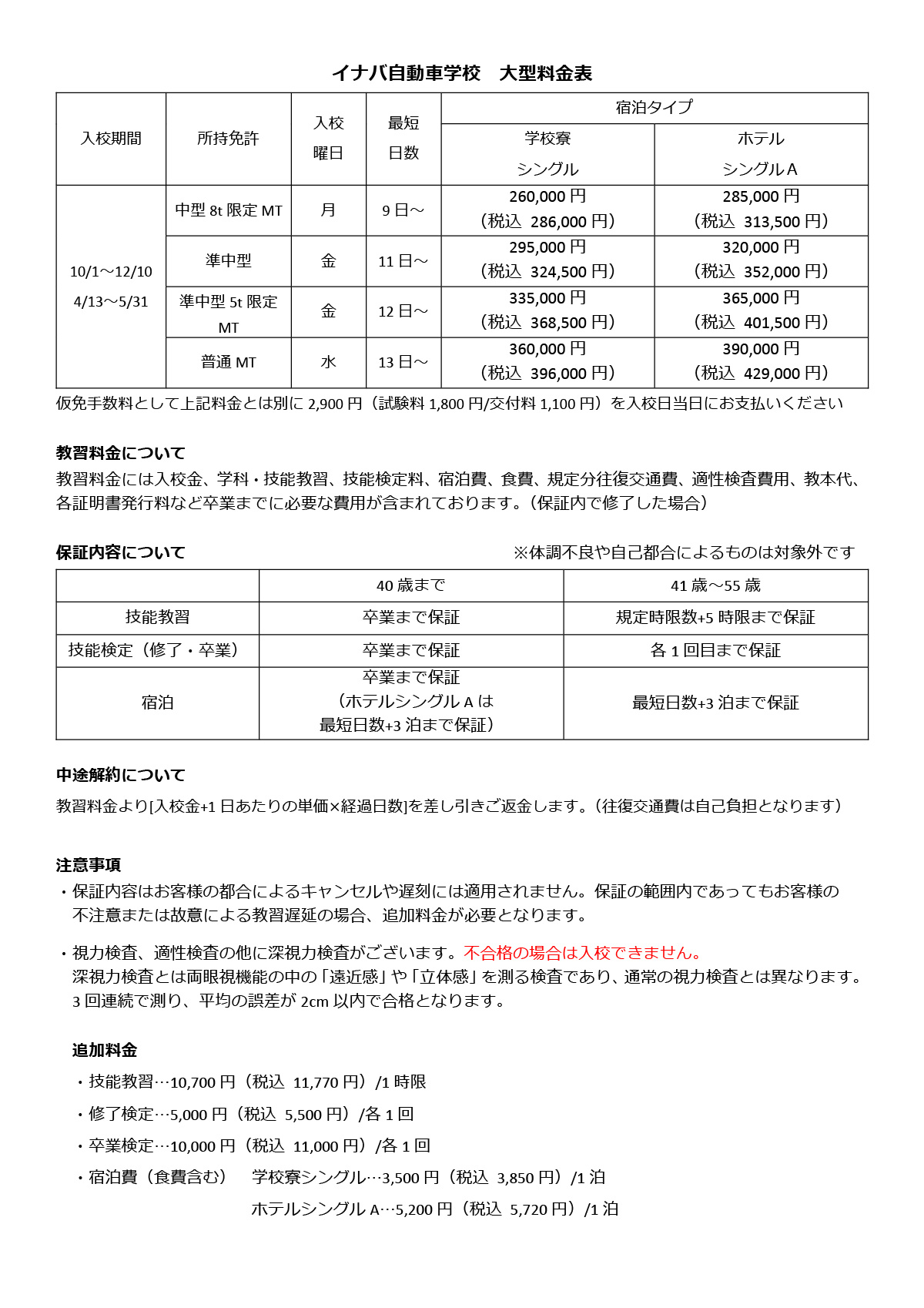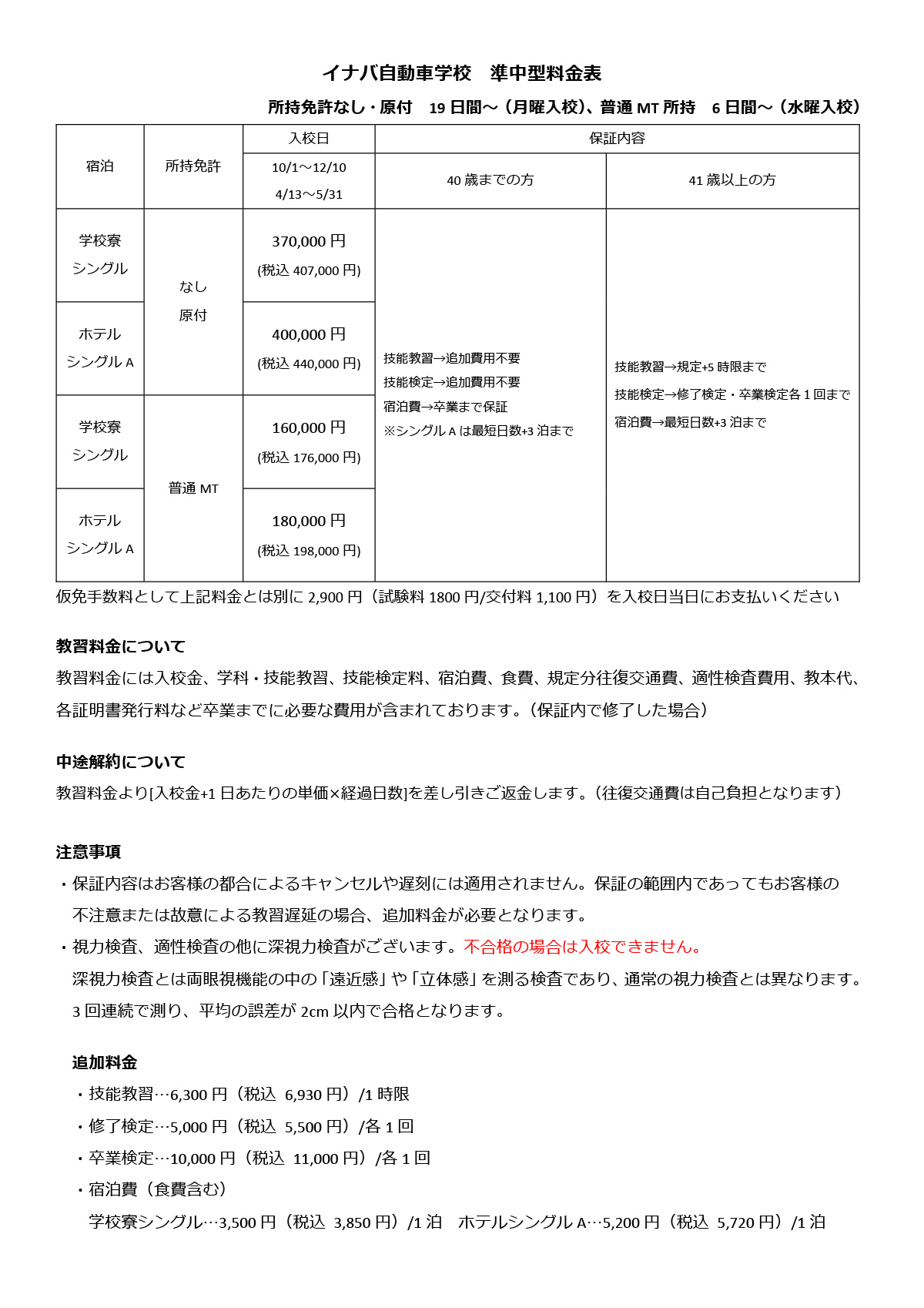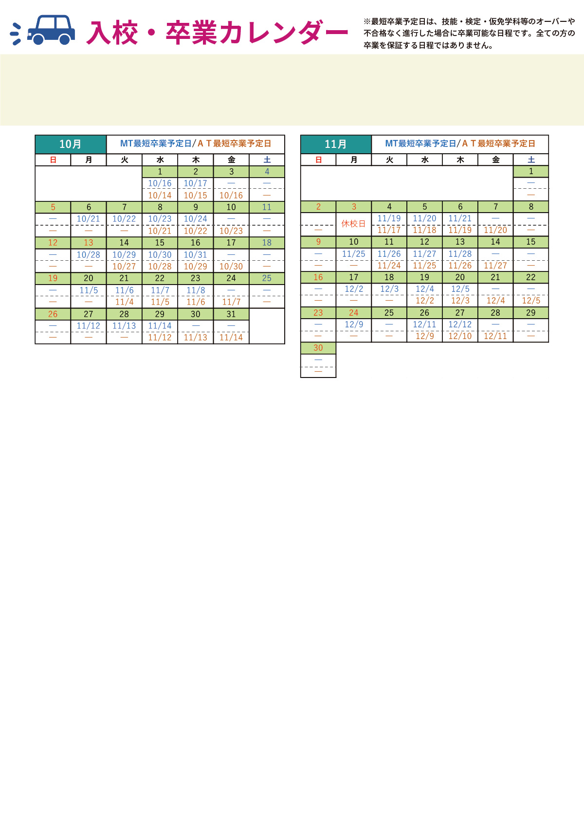 取得したい車種によって入校日と最短卒業予定日が決められています。
